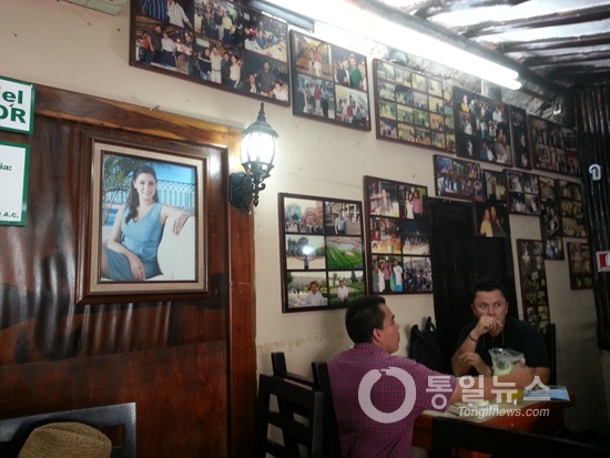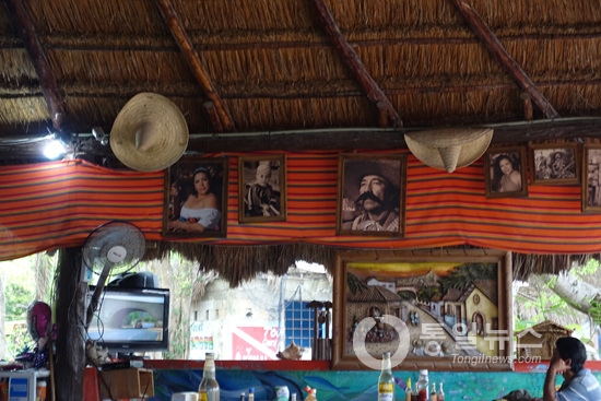 그러나 아직도 마야 유적지는 한참을 가야 한다. 도로변 곳곳에 식당이 보였다. 아무래도 점심을 먹고 가야 할 것 같았다. 한 식당에 들어가 자리를 잡았다. 유명인사들이 많이 다녀간 듯 사람들의 사진이 곳곳에 걸려 있다.