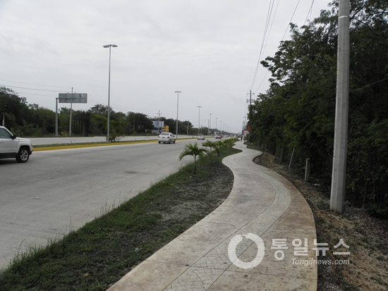 배가 부르다. 배를 채웠으니 이제 또 걸어야 했다. 가다가 표지판이 나와서 살펴보니 아직도 마야 유적지까지는 3.4킬로미터나 남았다. 속으로 ‘이건 최소한 1시간 거리다’라고 생각했지만 그 말을 할 수가 없었다. 지나가는 택시도 보이지 않고 버스를 타기에도 마땅치 않을 것 같았다. 원장님이나 이 대표는 걷는 걸 좋아하니 문제될 게 없었다. 나도 걷는 데는 이력이 난 사람이다. 교수님이 약간 걱정되긴 했는데, 그래도 잘 걷고 있다.