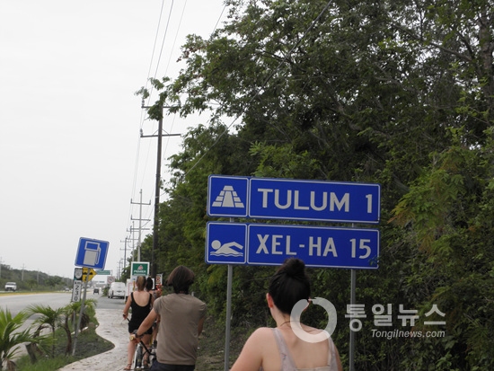 우리가 탄 버스는 툴룸 터미널에 도착하기 바로 직전, 그러니까 한 5분전에도 섰다. 알고 보니 그곳이 바로 툴룸 유원지였다. 우리는 거기서 내렸다면 쉽게 마야 유적지는 금방 찾아갈 수 있었겠지만 그걸 몰랐던 탓에 우리는 상당한 거리를 걸어야 했다.