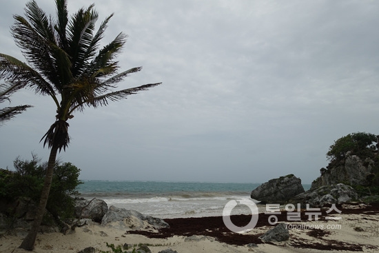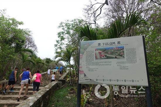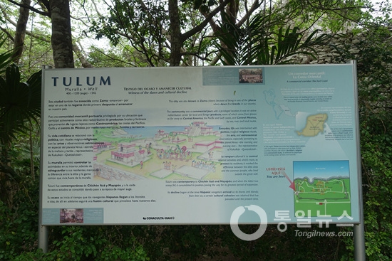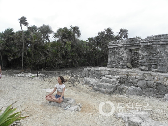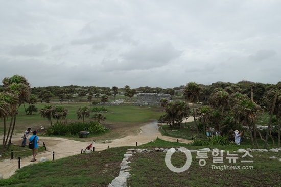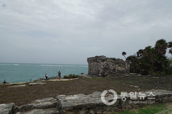 ‘툴룸(Tulum)’은 마야어로 ‘벽’이라는 뜻이라고 한다. 직사각형에 가까운 모양의 바닷가 마을이면서 천연의 요새였다. 툴룸 유적지를 보면서 나는 우리나라의 해미읍성이 생각났다. 똑같이 비교할 수는 없지만 성격상 유사한 측면이 있지 않을까 하는 생각을 했던 것이다. 이곳은 스페인의 침략 이후에도 가장 마지막에 남았던 지역으로 알려진다. 그것만 보더라도 이곳이 방어하기에 좋은 위치라는 걸 알 수 있다.