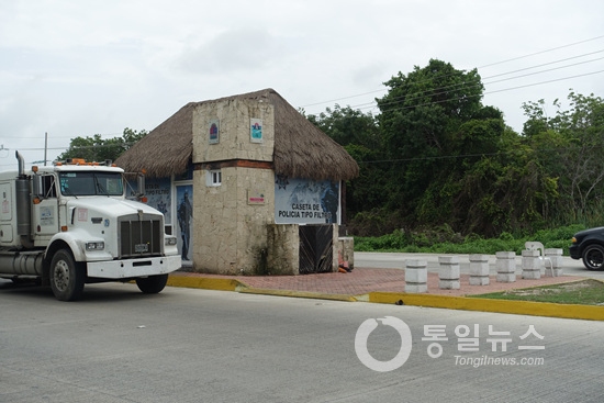 터미널 반대편으로 도로를 건너 인도를 따라 걸었다. 그 도로는 칸쿤에서 툴룸으로 오면서 지나왔던 길이었고 툴룸 시내를 가로지르고 있었다. 툴룸은 바닷가 휴양도시 같은 느낌이 단번에 느껴지는 곳이었다. 야자수 잎을 엮어서 지붕을 씌운 집들이 여기저기 보인다. 시내 관광지도를 비치해 놓은 관광안내소도 보인다. 우리는 버스가 왔던 길을 따라 유적지가 있는 방향으로 한 30분쯤 걸었다.