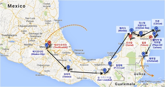 | 연재를 시작하며 지난 6월, 20여일간에 걸쳐 멕시코와 쿠바 일대를 여행하고 돌아왔다. 일행은 모두 네 명. 70대 초반의 전직 교수, 60대 초반의 현직 내과의 원장, 50대 후반의 인터넷 신문 대표, 그리고 50대 후반의 출판기획자인 필자다. 이번 여행에 대한 각자의 목적이 있었겠지만 나는 미국과의 관계 정상화에 앞서 변화하기 전의 쿠바 모습을 보고 싶었다. 또한 멕시코 고대문명 유적과 ‘멕시코 혁명’ 후예들의 모습도 직접 보고 싶었다. 이러한 흐름에 맞게 멕시코와 쿠바 여행에서 보고 만나고 느낀 것을 소박하게 쓸 생각이다. 이 연재는 매주 화요일과 금요일에 게재된다. / 필자 주 |