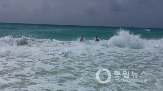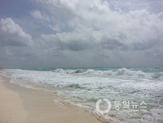 바닷가로 내려갔다. 카리브해의 파도가 나를 향해 끊임없이 달려든다. 탄성이 절로 나온다. 동해보다 물빛이 더 푸르고 맑지는 않지만 파도는 동해만큼 세차다. 해안가가 완만해서 어찌 보면 동해 파도보다 더 거세게 몰아친다는 느낌이 든다. 역시 풍광이 뛰어나다. 말 그대로 명불허전(名不虛傳), 칸쿤의 명성이 헛되지 않구나 싶다.