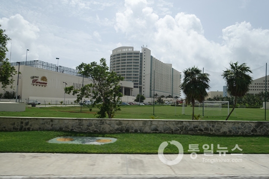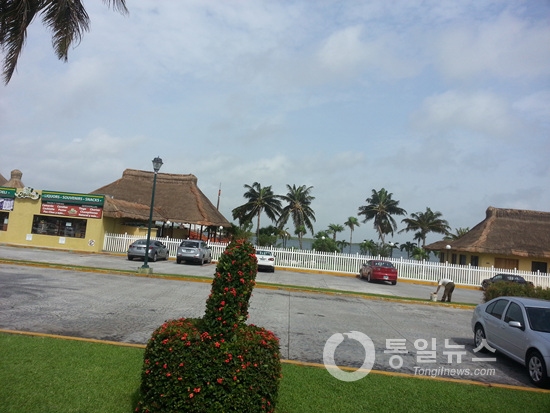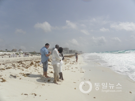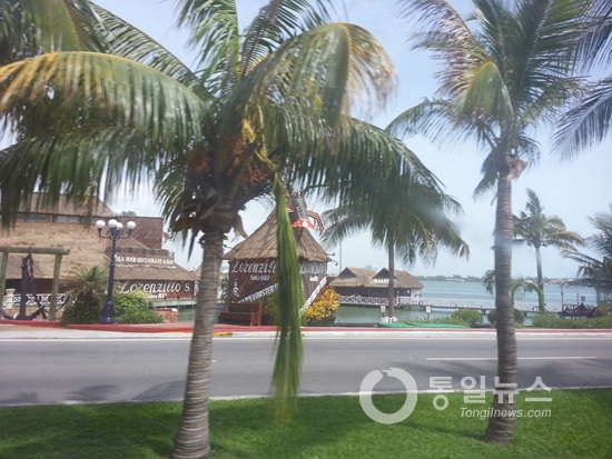 버스는 한동안 시내를 달렸다. 시간이 지나면서 많은 사람들이 내렸고 버스 안은 한산해졌다. 버스는 그 뒤에도 해변 호텔존을 한동안 달렸다. 바닷가에 가까워지자 그림 은 풍경이 펼쳐진다. 곳곳이 명승지다. 눈을 즐겁게 만들고 가슴을 뛰게 하는 아름다운 풍광이다. 차는 계속 달렸다. 40분 정도 달려 세계적인 휴양지로 이름 높은 칸쿤 해변가에 다달았다. 우리는 어디가 어딘지도 모르는 상태에서 어느 순간 버스에서 내렸다. 더 이상 가면 안 될 것 같다는 감각적 판단이 작용했던 것이다.