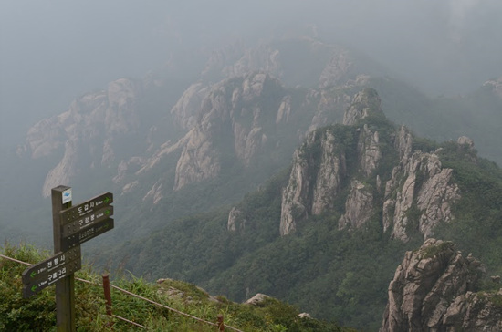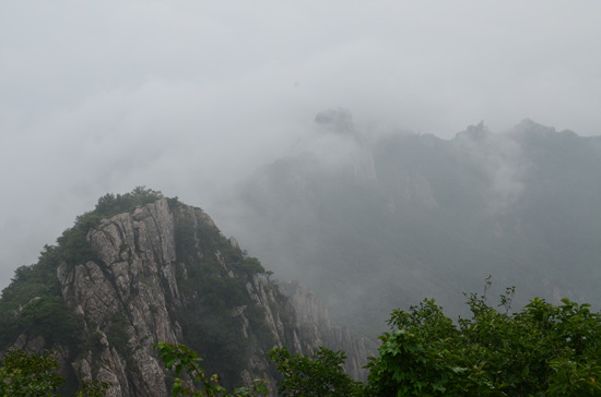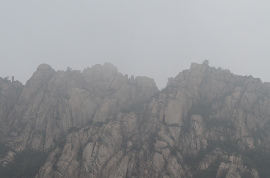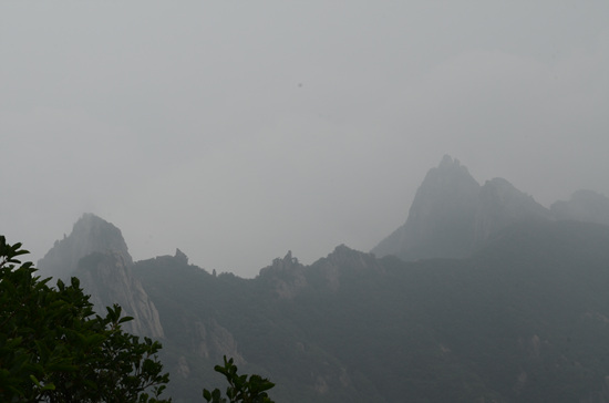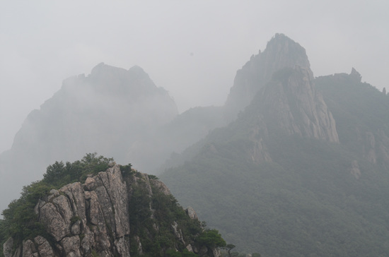 천황봉에 올라 봉우리들을 둘러보니 이 또한 예술이다. 안개가 자욱하게 봉우리들을 감싸는가 싶더니 어느새 다시 걷히며 웅장한 자태를 드러내곤 하는데 변화무쌍한 모습에 입을 다물지 못할 정도였다. 날씨가 좋은 날에는 천황봉에서 남쪽을 바라보면 제주도의 한라산까지 볼 수 있다고 하는데 아무래도 다음에 다시 오라는 뜻인가 보다.