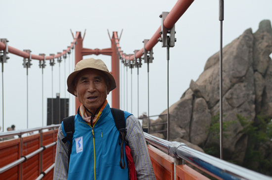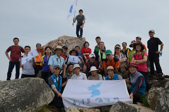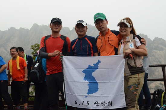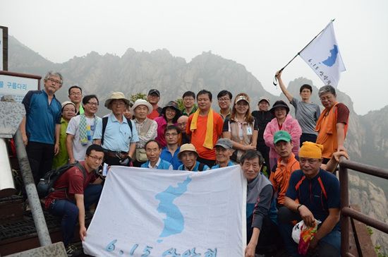 ▲ 전라남도 영암 월출산의 명물 구름다리에서 기념사진을 찍는 6.15산악회 회원들. [사진 - 통일뉴스 류경완 통신원]
