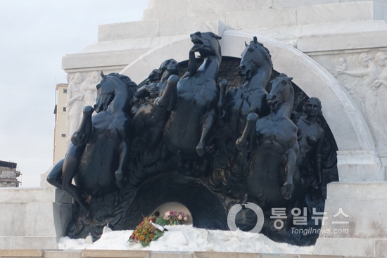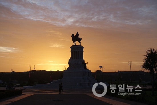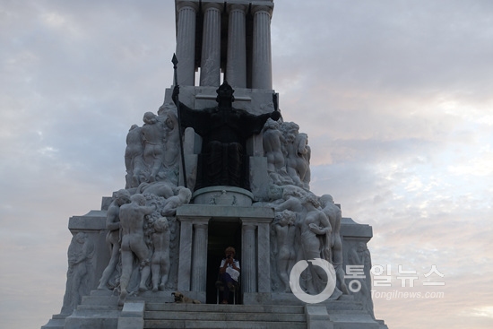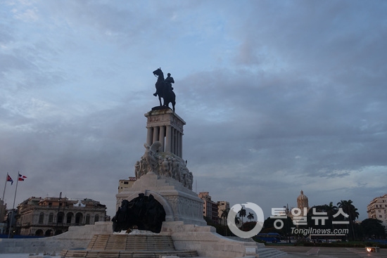 쁘라도 도로가 끝나는 지점에 어제 혁명박물관 앞에서 보았던 기마상이 바다를 향해 서 있다. 그 기마상은 아무래도 쿠바를 침략하는 외세를 막아내는 수호신, 군대 지휘관의 모양새를 하고 있다. 말레꼰 해변에서부터 기마상과 혁명박물관-그란마호 기념관-국립미술관-까삐똘리오-중앙공원이 거의 일직선으로 배치되어 있다.