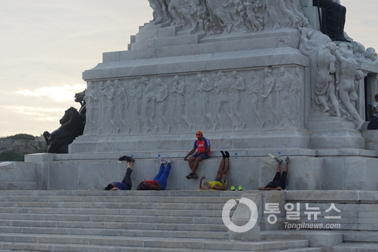 혁명기념관 앞에서부터 쁘라도 거리를 따라 걸었다. 해변 가까운 곳에 자리 잡고 있는 기마상을 자세히 살펴보기 위해서였다. 기마상은 쁘라도 거리가 끝나는 지점과 말레꼰 해변을 따라 조성된 인도의 중간에 위치한 작은 공원에 위치해 있다. 공원은 차도를 건너야 들어갈 수 있었다. 우리들은 신호등도 없는 도로를 건너서 그곳으로 갔다. 그곳에는 시민들과 관광객들이 함께 체조를 하거나 공원 주위를 뛰고 있었다.