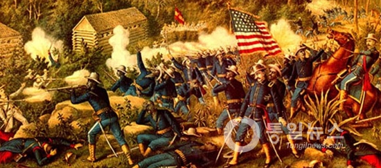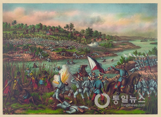 미국이 스페인과의 전쟁에 뛰어들기 전 쿠바 독립군은 이미 쿠바 섬 전체의 절반 이상을 해방한 상태였고, 1898년 2월 스페인은 쿠바의 자치정부 수립에 동의했다. 그런데 이때 아바나 항구에 정박 중이던 미 해군 순양함 메인호가 폭발하는 사고가 일어났고,(주1) 미국은 이를 빌미로 4월 21일 스페인과의 전쟁에 나선다. 미국 군함은 쿠바의 주요 항구를 봉쇄했으며, 미 해병대가 동남해안을 통해 쿠바 섬에 대한 상륙작전을 감행했다. 미국은 스페인령 푸에르토리코와 필리핀 공격에도 나섰다.