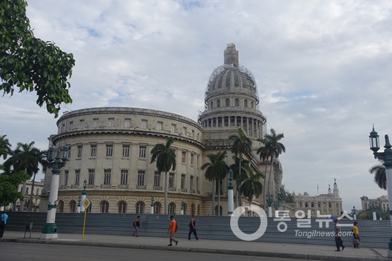 고메즈 장군 동상을 돌아본 뒤 1929년부터 국회의사당 건물로 사용되다가 1959년 혁명 후에는 기술부․환경부 건물로 사용된 까삐똘리오(Capitolio)를 구경했다. 이 건축물은 미국 국회의사당 건물을 닮은 것으로도 유명한데, 실물은 생각보다 훨씬 크고 고풍스러우며 품격이 있다. 건축물 외부 부속물 중에는 예술성 있는 조각상들이 있고, 내부에도 볼만한 것들이 많다고 알려져 있는데, 우리는 들어갈 수가 없었다. 지금 리모델링 중이어서 외부에서만 사진 몇 장 찍는 것으로 만족해야 했다.