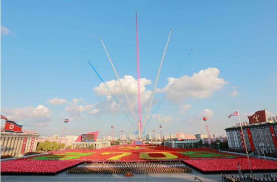 조선노동당 창건 70주년을 맞은 10일, 평양 김일성광장에서 열병식 및 군중시위, 청년들의 횃불시위가 성대하게 진행됐다.