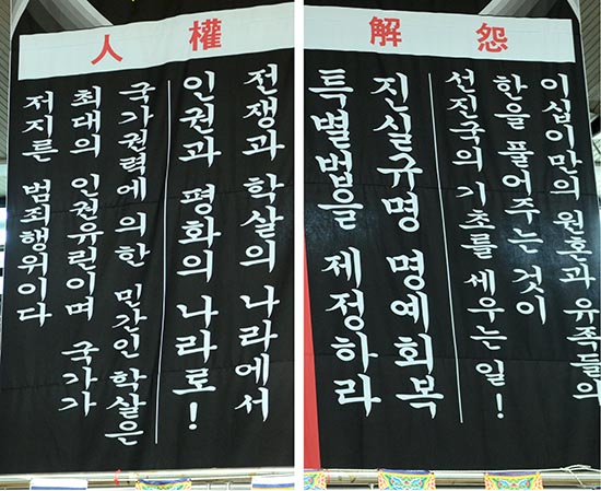 1. 정부와 국회는 빠른 시일 내에 추모공원 조성, 위령사업 지원 등을 이행하라!