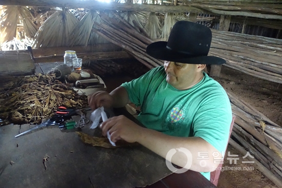 담배 농장(농장이라고 해봐야 우리의 담배막이나 과수원의 규모가 약간 있는 농막 정도의 크기다)에 들어서니 포스가 있어 보이는 아저씨가 탁자에 앉으라고 권한다. 우리가 자리를 잡고 앉자 그 아저씨 무게를 잡으며 “잉글리쉬 오아 스페니쉬?”하고 묻는다. 우리가 “잉글리쉬”라고 하니, “오케이”라고 말한 뒤 설명을 시작한다.