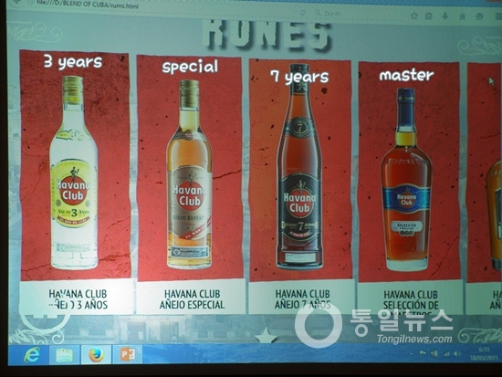 7) 하바나 클럽 '하바나 클럽(Havana Club)'은 쿠바에서 생산되는 럼으로, 하바나 클럽 인터내셔널이 생산하고 있으며 쿠바에서 수출되는 유일한 럼이다. 하바나 클럽은 헤밍웨이가 즐겨 마셨던 칵테일 ‘다이키리’에 사용된 술로 유명하다. 지금도 쿠바의 헤밍웨이가 마셨던 바에서는 다이키리를 주문하면 이 하바나 클럽을 이용하여 다이키리를 만들어 준다고 한다. 하바나 클럽은 숙성연도에 따라 구분되는데, 대표적으로 7년 동안 숙성한 상급의 ‘하바나 클럽 아네호 세븐 아노스’와 3년간 숙성한 ‘하바나 클럽 아네호 쓰리 아노스’가 있다. 또한 최고 등급의 ‘하바나 클럽 맥시모 엑스트라 아네호’, 가장 낮은 등급의 ‘하바나 클럽 비앙코’ 등이 있다. 우리가 먹은 술은 아마도 가장 낮은 등급의 술이었던 것 같다. 럼은 사탕수수를 증류하여 만든 술로 초기에는 사탕수수를 정제하고 남은 찌꺼기를 이용하여 만들었기 때문에 가격이 저렴한 저급주로 취급받으며, ‘해적의 술’로도 불렸다. 지금은 제조기술 발전과 더불어 뛰어난 품질로 전 세계에서 사랑받는 술이 되었고, 피나콜라다, 블루하와이, 쿠바리브레 등의 칵테일 재료로도 사랑받고 있다고.