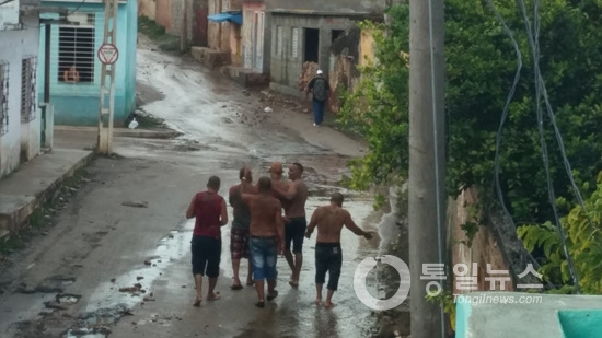 ▲ 물바다가 된 골목길에 쓰레기를 버리는 쿠바인. [사진제공-임영태]