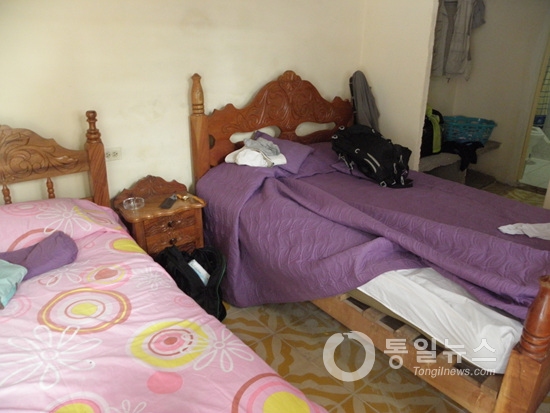 그 집주인이 주변의 다른 집을 소개해주었다. 하지만 그 집의 경우, 방 하나는 트윈베드가 하나 있고, 다른 방은 투 베드였다. 아무래도 불편해 보였다. 그 집을 나와 또 다른 집으로 갔다. 밖에서 보던 것과 달리 집이 상당히 깊숙하고 넓었다. ‘아라비안나이트’에 나오는 아랍 궁전처럼 생긴 통로를 따라 안으로 들어갔다. 시설이 깨끗했다. 하지만 우리에게 맞는 숙소가 없었다. 방이 하나밖에 없었던 것.