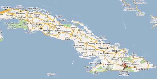쿠바 섬의 면적은 한국과 비슷하지만 좌우로 길게 늘어서 있어서 동남부 끝에 위치한 산티아고는 수도 아바나에서도 870km나 떨어져 있다. 서울에서 제주도까지의 직선거리가 470km밖에 안 된다는 걸 감안하면 교통이 잘 정비되지 못한 쿠바에서 이건 여간 먼 거리가 아니다. 아바나에서 관광을 시작하는 경우, 산티아고까지 갖다오기가 쉽지 않다는 이야기다. 그 때문에 산티아고를 가기 위해서 비아술이나 택시보다는 비행기를 이용하는 경우가 적지 않다.