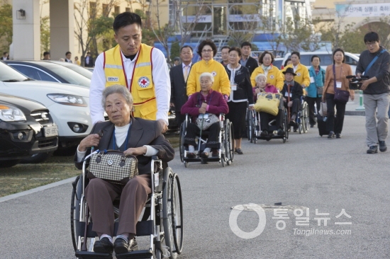 북측 조카들을 만나러 가는 김매순(80) 할머니는 평소 앓던 당뇨·고혈압 지병이 악화돼 앰뷸런스를 타고 이동했으며, 이명세(92) 할아버지도 건강에 큰 문제가 있는 건 아니지만 소변줄을 단채 이동해야 하는 것이 다소 불안해 앰뷸런스를 이용했다. 전날 저녁 회진 결과 소화불량과 감기 등 가벼운 증상을 보인 11명의 가족들은 버스 편으로 함께 이동했다.