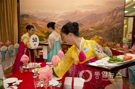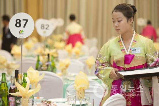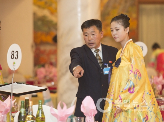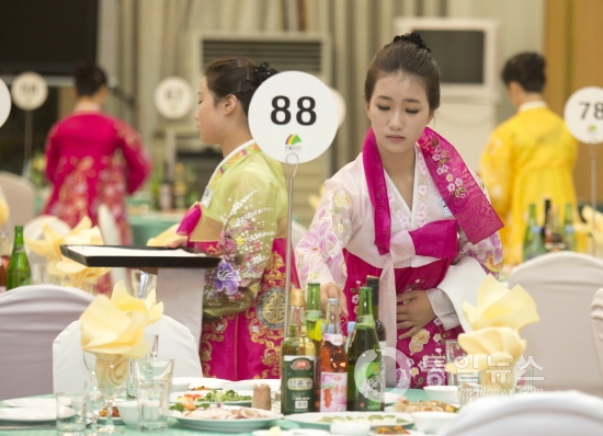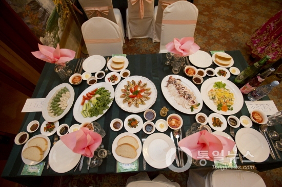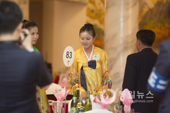 제20차 이산가족 상봉 행사 2차 상봉 첫째 날인 24일 북측이 준비한 환영만찬이 금강산호텔 2층 연회장에서 오후 7시(현지시간, 서울시간 7시30분)부터 진행됐다.
