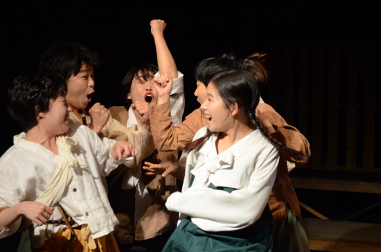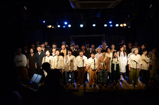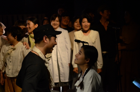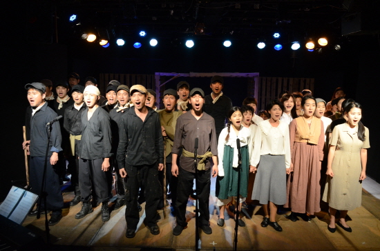 ▲ 지속되는 패배는 없다. “내일은 꼭 오리라!” 희망을 부르는 50여 배우들. [사진 - 통일뉴스 류경완 통신원]