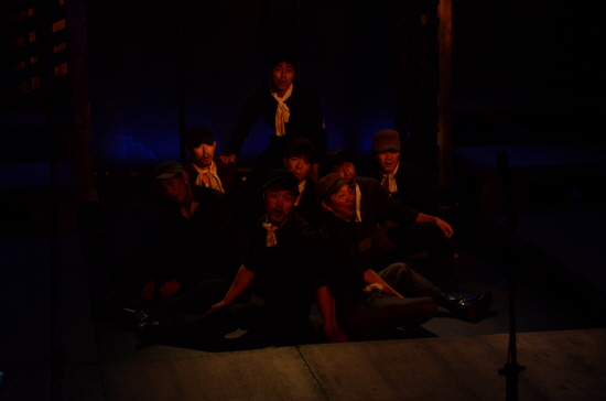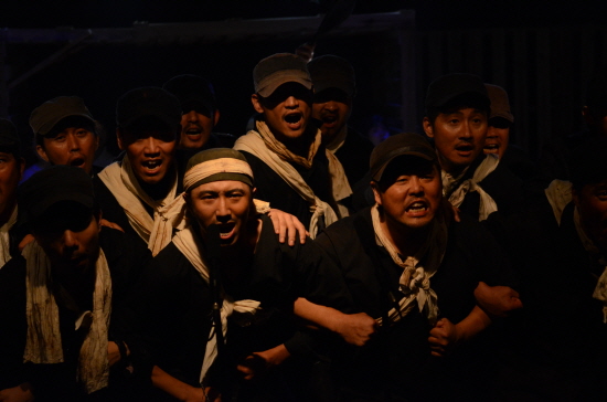 그 주제대로 뮤지컬 화순은 오직 사람의 힘으로 극을 이끌어간다. 무대가 배우를 만드는 것이 아닌, 배우가 있기에 공간이 무대가 되는 마술을 부린다. 40여 명의 배우가 몸을 울려가며 뿜는 소리는 귀가 아니라 몸뚱이를 관통해 들려온다. 너릿재에서 죽어갔던 광부들의 힘이 배우들에게 내려앉은 걸까. 지하 소극장은 화순 탄광이 되고, 조선 땅이 되고, 역사가 된다.