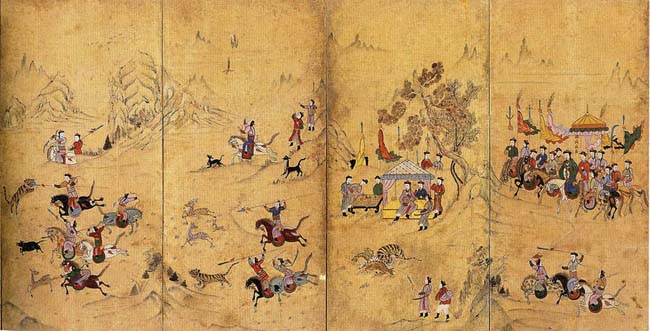 청나라를 세운 만주족의 사냥그림인 [호렵도]는 제목 그대로 호랑이를 사냥하는 그림이다.