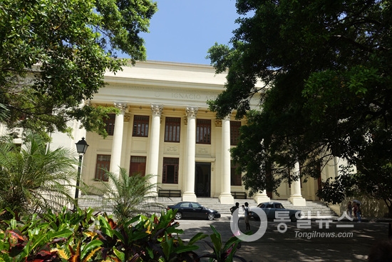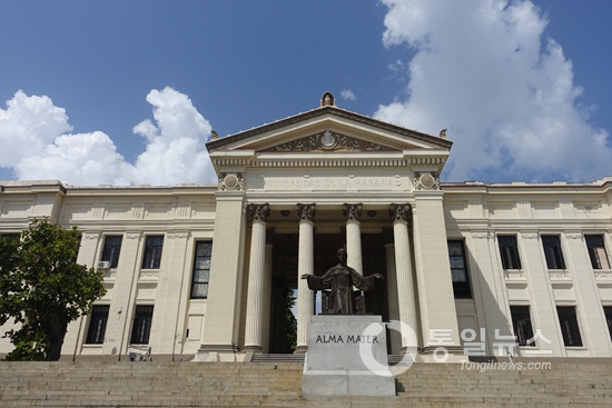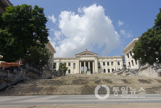 대학교 안으로 들어가기 위해 계단을 올라간다. 그때 남녀대학생 2명이 지나가며 우리를 쳐다본다. 우리는 서로 ‘올라~’라고 인사한다. 원장님, 그 학생들에게 말을 건다. “우리는 꼬레아에서 온 여행객인데, 아바나 대학 안내 좀 해줄 수 있겠느냐?”고. 흔쾌히 “그렇게 하겠다”는 대답이 돌아온다.