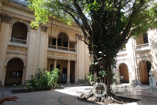 우리는 남녀학생의 안내로 카스트로가 공부했다는 법학대학 건물도 보았고, 약학대학, 자연과학대학 건물도 보았다. 아바나 대학에는 의학부가 없고, 아바나 의과대학이 독립돼 있는 것이 특징적이다.(주2) 인문학, 사회과학, 자연과학 등 기초학문 중심의 아바나 대학의 학생수는 1만 명 정도라고 하는데 쿠바 인구를 감안하면 상당히 규모가 큰 편이다. 아바나 대학에는 동양인도 100여명이 유학하고 있는데 대부분 중국학생이고 북한 학생이 10명 정도 있다고 한다.
