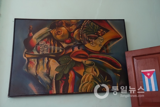 바의 벽에는 그림이 한 점 걸려 있었다. 그림에는 네 개의 술잔이 놓여 있다. 왼편에는 백색 술잔만 두 개 놓여 있고, 오른편에는 백색 술잔과 검은색(진홍색) 술잔이 놓여 있다. 이 그림은 혁명 전과 혁명 후의 쿠바 상황을 설명해준다고 그 학생이 말한다. 혁명 전 쿠바는 백인들이 지배하는 사회였으나 혁명 후 쿠바는 흑백, 황색 등 인종 차별이 없어지고 하나로 융합한 사회가 되었다고 설명한다. 그 학생은 흑인(혼혈)으로 얼굴이 오바마를 닮았다. 쿠바는 혁명 후 인종차별 정책을 완전히 없앴다. 심지어 쿠바는 인구조사에서 인종에 따른 분류통계를 내지도 않고 있다고 한다.(주3) 쿠바에는 피부색, 인종과 상관없이 쿠바인이 있을 뿐이라는 이유이다.