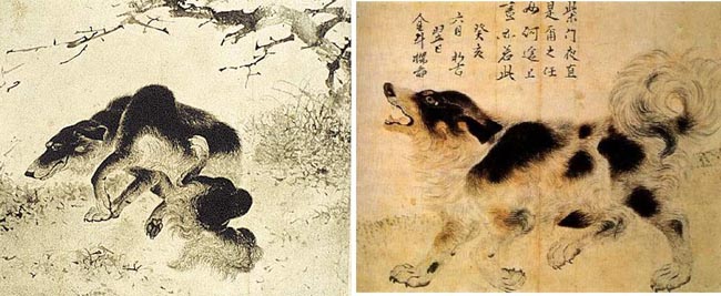 ▲ 변두량의 개 그림이다. 오른쪽 그림은 삽살개를 그린 것이고 왼쪽은 외래종으로 추측한다. [자료사진 - 심규섭]