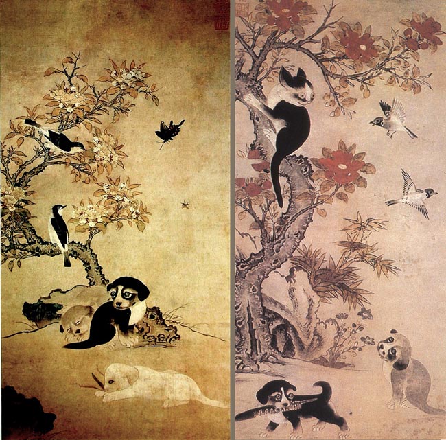 ▲ 이암은 동물그림의 대가로 알려져 있다. 개는 흔히 검둥이와 흰둥이로 불리고 고양이는 주로 검정고양이를 그렸다. 이밖에 까치와 참새 같은 조류도 많이 등장한다. 고양이는 주로 장수축원의 내용을 담고 있지만 내용과 관계없이 평화로운 모습이다. [자료사진 - 심규섭]