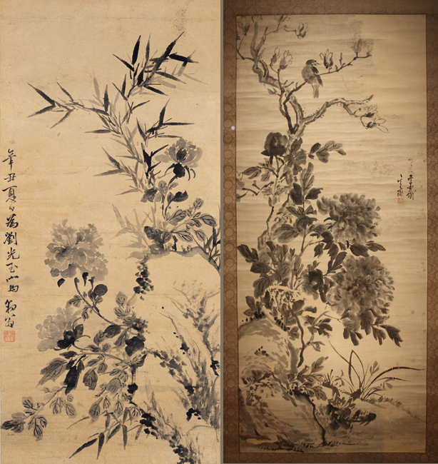 우측-심사정/묵모란/18세기/종이에 수묵/136.4x52.3cm.