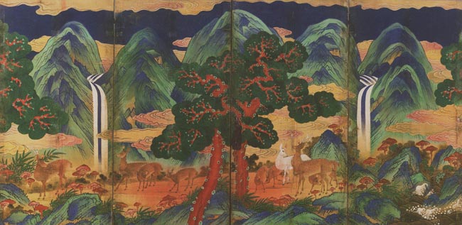 물론 이렇게 [십장생도]로부터 [오봉도]가 완성되기까지 오랜 시간과 변주과정을 거쳤을 것이다.