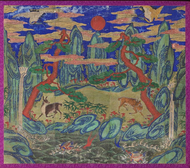 그럼에도 편의에 따라 [오봉도]로 지칭했다는 것은 바탕이 되는 [십장생도]와 대략적인 구분이 필요했기 때문이다.