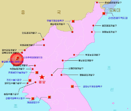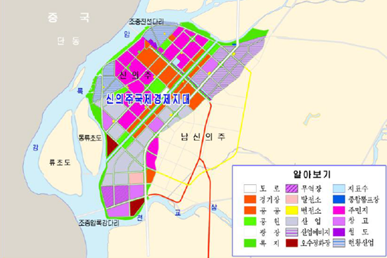 북한 신의주국제경제지대가 약 38km² 부지에 35만 명을 거주하는 내용으로 개발계획을 추진 중인 것으로 확인됐다. 이는 여의도 면적의13배 규모로 동북아시아 물류중심으로 만든다는 구상이다.