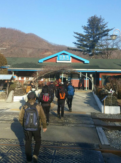 회원들이 연이어 전철이 도착하니 속속들이 집합했다. 각자 백마고지행 기차표를 매입하여 통근열차를 탔다. 약 1시간 가는 기차비가 천원이라 너무 싸게 느껴져 승무원에게 여쭈니 정책적으로 그렇게 운영하다고 했다.