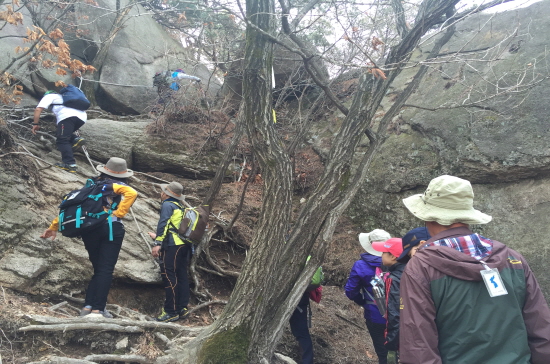 내려갈 때 경사가 급할 때는 뒤로 돌아서 가는 것을 배웠다. 바위에 있는 밧줄을 잡고 내려갔는데 잘 한다고 칭찬받았다. 정상에 있는 바위에서 내려올 때 할아버지가 나를 받아서 안아서 내려주고 엄마도 잡아줬다. 할아버지인데 나보다 산에 더 잘 올라가고 내려가고 힘도 세서 신기했다.