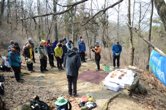 정상에 갔다가 먼저 하산한 사람들이 있는 곳으로 갔다. 사람들이 시산제 준비를 하고 있었다. 제사상에 음식이 많았다. 족발이 있는 것도 이상했는데 돼지저금통이 있는 건 더 이상했다. 엄마가 원래 돼지머리를 놓는 건데 그걸 대신해서 돼지저금통을 놓은 거라고 설명해줬다.