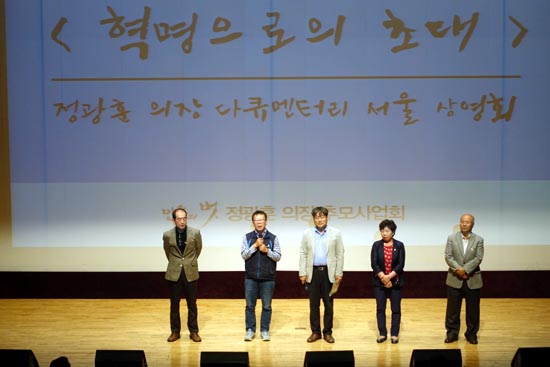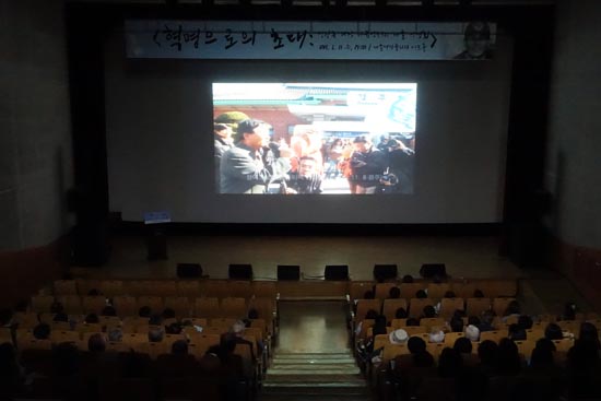 이날 다큐멘터리 <혁명으로의 초대>는 완성본이 아니었고, 이에 대해 문경식 회장은 “준비과정에서 많은 부족함이 있음을 사과드린다”고 말했다.