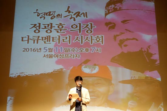 조병옥 전농 사무총장의 사회로 진행된 이날 상영회에서 정광훈 의장의 장남 경철 씨가 어머니를 대신해 감사의 선물을 받았고, 송경동 시인이 추모시 낭송을, 우리나라가 노래공연을 했다.