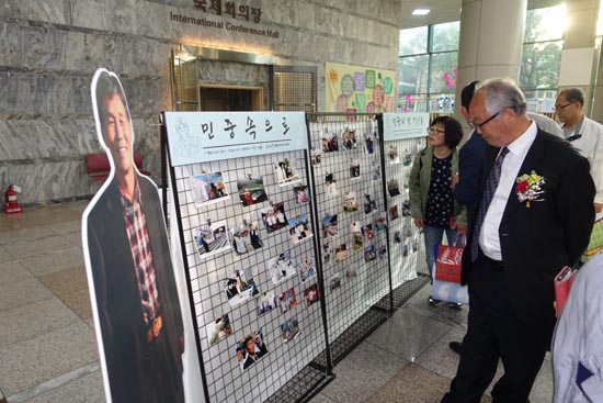 이날 유품 전시에는 연설문 메모 등 자필 원고들과, 민복과 잠바, 모자는 물론 안경과 사진기, 손피켓 등 다양한 유품과 사진들이 전시됐다.