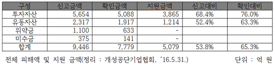 회계적으로 타당한 객관적인 증빙자료를 제출하지 못해서 피해로 인정받지 못한 부분은 일부 있으며, 특히 일부 기업의 경우에는 승인 또는 신고가 필수적인 관계 법령을 무시하고 물자를 무단 반출한 후 이를 피해로 인정해 달라는 주장까지 있었다고 설명했다.