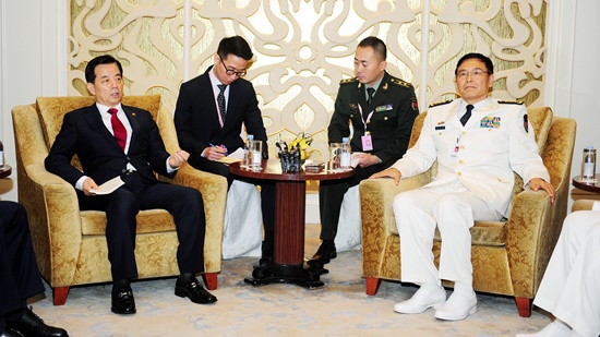 한민구 국방장관은 이날 제15차 아시아안보회의(샹그릴라 대화) 계기에 싱가포르에서 중국 쑨젠궈 인민해방군 부총참모장과 양자대담을 가졌다.