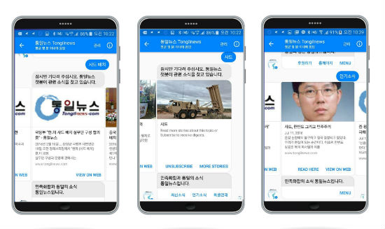 통일뉴스는 국내 언론사로는 처음으로 20일부터 페이스북 메신저 기반의 챗봇(chat bot) 서비스를 시작한다.