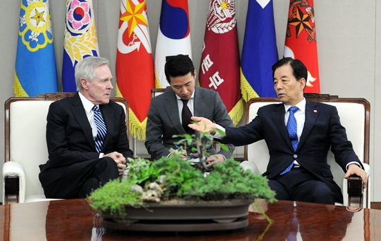 방한 중인 미국 레이 메이버스 해군장관이 19일 한민구 국방장관을 만나 북한 위협 대응 방안에 대해 논의했다.