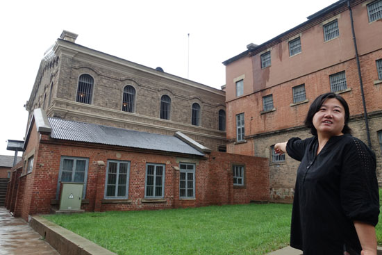 ▲ 19일 대련에 도착한 기행단은 여순감옥을 첫 행선지로 택했다. 4박 5일동안 우리 일행을 안내해 준 이경옥 선생이 안중근 의사가 갇혀있던 독방을 가리키고 있다. [자료사진 - 통일뉴스]