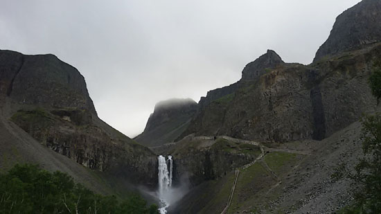 ▲ 장엄한 백두산을 배경으로 장백폭포가 흰 물줄기를 뿜어내고 있다. [사진 - 이재원]