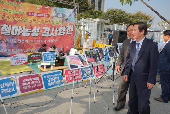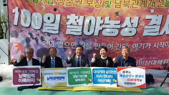 남북경협기업비상책위원회는 금강산기업인협의회와 함께 10.4선언 9주년을 맞은 지난 4일, ‘남북경협기업 생존권 보장 및 남북관계 개선을 위한 평화 큰행진’을 갖고 100일 철야농성에 돌입한 상태다.