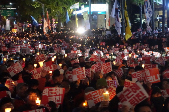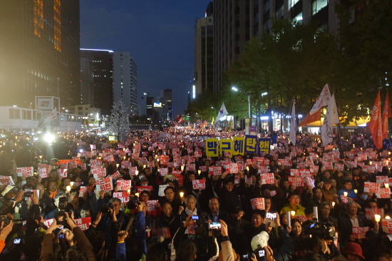 박근혜 대통령과 ‘비선 실세’ 최순실이 합작한 초유의 헌정문란사태로 촉발된 국민들의 분노가 29일 저녁 서울 광화문 인근 청계광장의 촛불로 타올랐다.