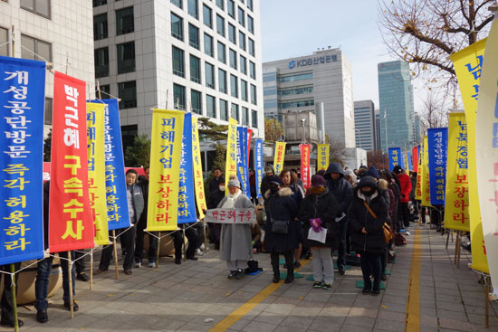 개성공단기업피해대책위원회(피대위)와 민주실현주권자회의(주권자회의)가 주관한 ‘개성공단기업 정상화와 남북경협 복원을 염원하는 장례식’이 23일 오후 2시 서울 여의도 국회의사당 앞 국민은행빌딩 인근에서 열렸다.